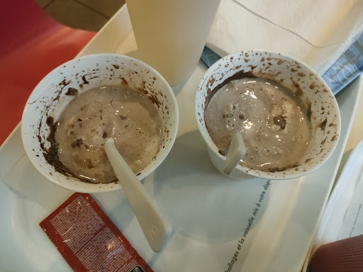Tout avait pourtant bien commencé. On commande aux bornes à l'entrée. Les tables ne sont pas forcément nettoyées au fur et à mesure. Pourtant, on passe au dessus car l'établissement est noir de monde et le service rapide. On voit nos plateaux arrivés et nous sommes ravis. Jusqu'au moment où mes yeux se posent sur ce qu'ils appellent un "mac flurry". Je vais les voir en leur montrant cette bouillie immonde qui ressemble étrangement à du vomi. Réponse du personnel : "nouveau protocole, le chocolat chaud est versé et on doit touiller à présent. On sait c'est pas génial mais c'est comme ça". Ça ne ressemble plus du tout à la photo mais c'est peut-être bon... Je repars m'asseoir et mange mon repas. Nous sommes au dessert et bien non, ça n'est pas bon ! Le principe d'une glace mais pas glacée et on peut à peine discerner le goût vanille. A la moitié, on a jeté nos glaces. Même ma fille qui mange par gourmandise ne s'est pas régalée ! Si vos clients sont nombreux à vous faire remonter que ça ressemble à un vomi, peut-être faut-il signaler que le nouveau protocole n'est pas le bon vu le prix du dessert ... Je mets la moitié de la note mais je ne reviendrai pas. Vous bénéficiez d'une position stratégique sur un carrefour mais n'oubliez pas que vous n'êtes pas les seuls à proposer de la...