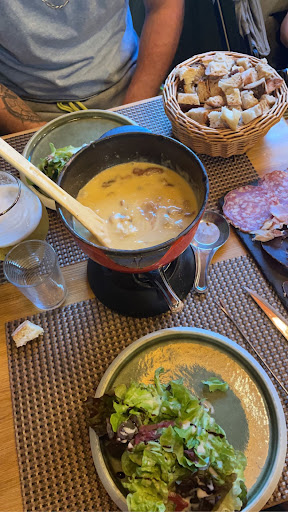 We had dinner here with a party of 11 to close off a great week of skiing. We had a reservation at 9 but we had to wait an additional 20 minutes outside in the cold while they were cleaning our table. Once inside we were guided to the “cosy” upstairs area. We had someone with us who had a ski accident so the stairs were not ideal. This was not mentioned beforehand. Once upstairs we were met with three coffee tables which had to serve as our dinner table. There were no chairs, just some wooden benches of different hights and some pouffes. This lead to some of our friends having to eat their dinner on their knees as the wooden bench was too high to use the table. The food was ok but nothing special. Some of us ordered a côte a l’os, which was chewy and overal very overpriced seeing the quality. Conclusion, I would not recommend to come here with a large group if you want to have a nice dinner. And if you do, stick to the burgers and the tartiflette. The staff remained very friendly and professional during all this, no complaints in...