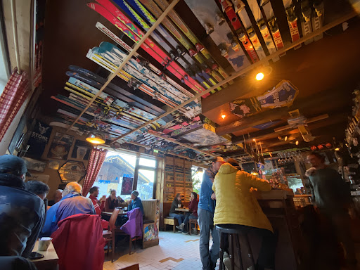 Étant de passage dans ce petit village, nous avons été fort heureuse de trouver ce charmant café. On nous a accueilli avec le sourire et une musique des plus déconcertante. Pleins de bières à la cartes et de nombreux skis au plafond, en veux tu en voilà. Une jolie mangeoire vous attendra devant la porte d'entrée et vous permettra ainsi d'être écolo et de ne pas jeter votre mégot par terre. Les banquettes sont d'un confort ultime et les nombreuses tables vous permettront de trouver une place quoi qu'il arrive. Les toilettes contiennent même un lavabo et du savon ce qui nous ravie en cette période de crise sanitaire....