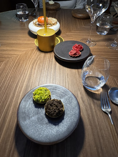 This is absolutely one of the most magical, delicious, and all around outstanding meals we have ever had. The staff provided impeccable service, were extremely friendly, and also knowledgeable about drink pairings and timings, substitutions, and accommodations, including doing a phenomenal job at providing a vegan tasting menu. At the beginning of our dinner, we were asked if there were any other dietary restrictions or preferences, and one of us noted a particular aversion to mushrooms -- despite the menu heavily incorporating mushrooms and truffles from the region, the team did an amazing job with impeccable attention to detail accommodating that preference especially on such short notice. Favorites ranged from the “Childhood Memory” pasta in a chicken jus and Savoie cheese to the dressed up trout and from the “Beauty and the Beast” glazed Swiss chard to the “Head in the Mountain Pastures” milk ice cream and custard, as well as the table-side butter and cheese service. The chef also came out several times to plate us specific dishes and add different sauces, while also coming out at the end wishing us well and asking for any honest feedback. The restaurant EASILY deserves two stars, and from the other reviews I know I am not alone. Absolutely surpassed...