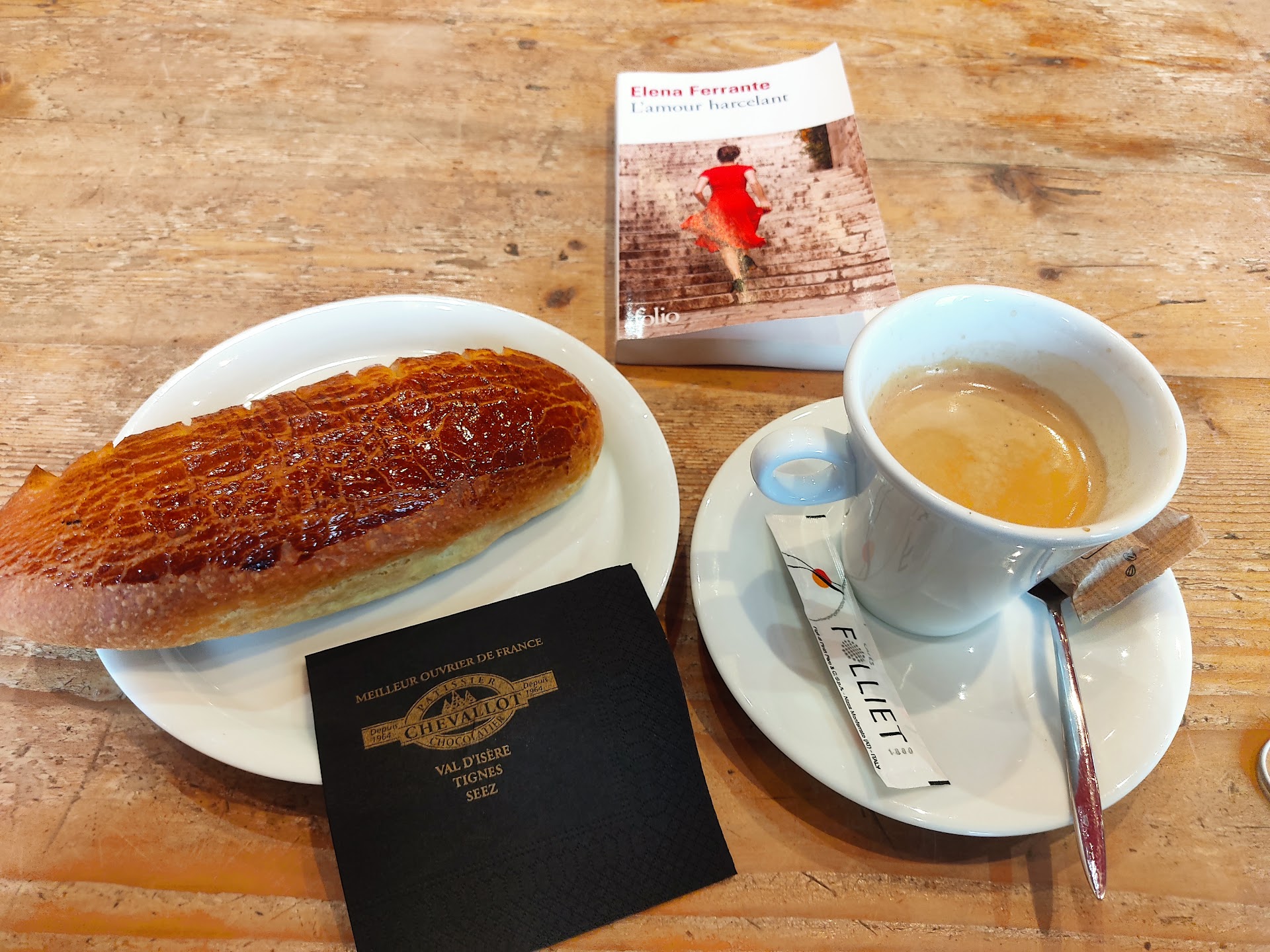 Read moreAt 4,60⏠for a pain au chocolat and a café allongé I was disappointed at having to search for my own serviette as one wasn't given with my plate. I was then further unimpressed at being called to collect my own coffee from the counter as none of the numerous staff were bringing it. I was the only customer! Neither was it served with a spoon, the tables were dirty and there is not a single coat hook to be seen. It is such a shame that attention to detail is not being regarded as the environment and decor are...