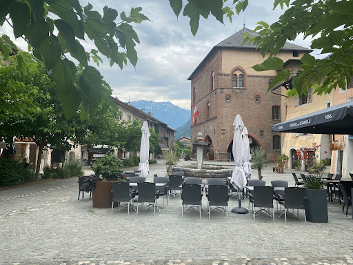 The surroundings are stunning, in a medieval village where cars are forbidden. And you can enjoy it from the terrace which has a fairly good sun exposition but there's also a big blind to make shade if you want. Inside the restaurant, it's much more commonplace.
