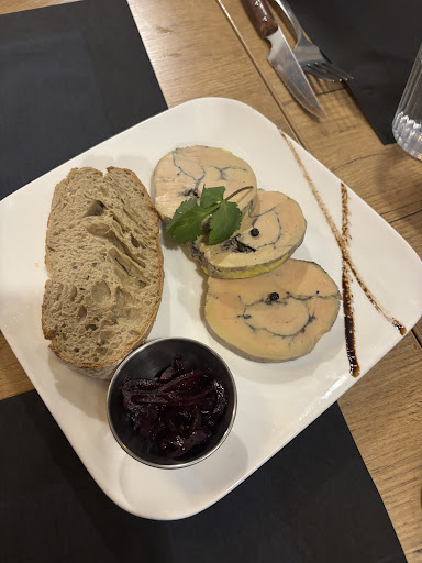 Although the food was good we had to wait several eternities for it to arrive , staff were apologetic but generally dazed , confused and disorganised. We asked for an extra glass of wine to drink with our meal ( as we had finished the bottle by the time the main course landed) pleasantly surprised to receive this FOC when the bill was supplied. They also gave us a free Calvados ( which was sadly spoiled with ice) but the apparently it's the thought that counts... The original bottle of red wine also arrived cold ( not beajoulais). All in all it was a comedy of errors and although we had a nice evening a more discerning diner would probably have spat their...