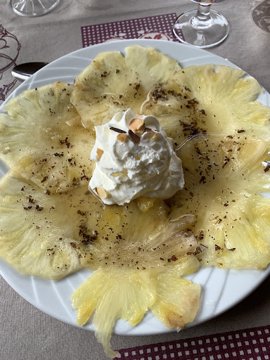Read moreJ'avais envie de Tartiflette, et bien j'ai été servi, voir photo. Une belle croute de Reblochon bien cuite et le fromage bien mélangé au pommes de terre et aux lardons, un régal et une belle portion. Pris aussi une croute au fromage 👍. En dessert un carpaccio d'ananas avec de la chantilly faite maison. Ce dessert un délice avec le jus à la menthe et surtout une chantilly incroyablement légère et goûteuse. Le patron très accueillant et plein d'humour. La cheffe est venue prendre de nos nouvelles elle nous a expliqué ses recettes....