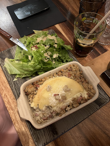 Read moreWe had a great night here. The food was very good (hot stone x2 and Tartiflette to share between 4 people) and the service was excellent too. BUT...the atmosphere made the evening...we went to the second sitting (9pm) and the restaurant was buzzing with music playing (some classic French sing-alongs... I think đ) with everyone in the restaurant joining in and having a great time! If you want a quiet meal for 2, go to the early sitting (7pm), but if you want...