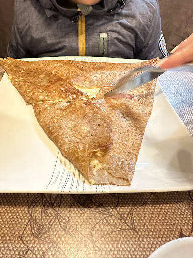 Read moreSolid eats and fast friendly service. We each ordered one of the set meals which consisted of a savoury crepe, sweet crepe, and a drink. Good value (for a meal in France). Portions were large and we struggled to finish everything. Staff was accommodating to our limited French and provided a table at the back of the restaurant, which was perfect for the young children. Overall good experience and would...