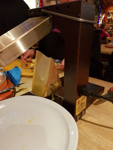 Nous avons commandé un raclette pour 4. L'assiette de charcuterie et salade est pauvre. La portion de fromage delivrée était à peine plus grande que pour une 2 personne. Nous demandons alors si l'on peut obtenir à nouveau du fromage car à 4, la petite portion n'a pas duré. La gérante a au début refusé, ou alors il fallait payer encore une raclette. C'est au bout de 10 mins de négation avec le serveur que la gérante nous laisse par "gentillesse" un petit morceau de meule en plus. Cf la photo. Pour la raclette de 2 pers, ils servent environ 1/4. Pour 4, nous avons obtenu à peine plus d'1/3 de meule. Le restaurant n'a pas d'excuse car il possède les machines pour disposer 1/2 fromage, et donc une vraie raclette pour 4. Par souci de rentabilité sûrement, nous avons été obligé de négocier afin de pouvoir manger une raclette pour 4 à notre faim. Pour le prix, c'est décevant et très désagréable de devoir négocier...