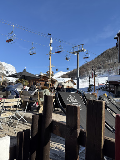 After a long day skiing this is the best place to have lunch or an early dinner. The burgers are amazing and the soup is served in a bread bowl! If the weather is good, sit out side and enjoy the view. The inside is just as nice too; cosy with lovely furniture. The food is reasonably prised but the drinks are a little expensive at €4 for a coke, however no more expensive than any where else in Val D’Isére. The dessert menu is a tray of all the handmade deserts made that morning so you can actually see what your ordering! The hot chocolate is great if you just want to stop for a bit and warm your self up. In all this is a great...