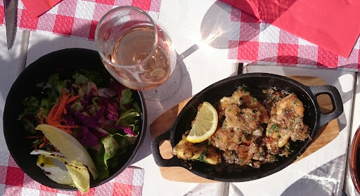 Cozy restaurant offering French comfort food, wine, desserts & sweeping views of the mountains.