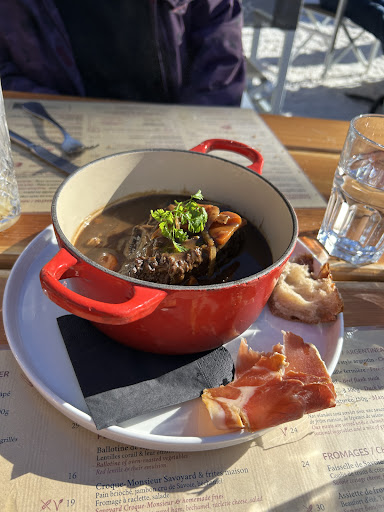 It was a third time at this restaurant and first unpleasant experience due to a waiter who was unable to control his emotions. We were told we couldn’t have raclette because it was off the menu, while surrounded with customers eating raclette. The waiter said we would have to go upstairs to their Savoyard restaurant otherwise it would cost us too much money to eat it downstairs. I guess he determined we were poor because he didn’t even give us the option. He decided it was too expensive for us. We moved upstairs, confused, trying to understand why he made this decision for us. While talking to my husband he interjected in a very high voice, so the entire restaurant could hear. he said the price was €60 per person just to have raclette downstairs, which is incorrect, that’s the price for the buffet. He was visibly very emotional and couldn’t control his aggressiveness therefore we just stopped the argument because he was not in the right state of mind to have a civil conversation.