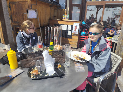 Sat outside and didn’t get approached by anyone, had to clear our own table, other tables served before even coming to see us. Then we were offered to go inside as warmer… a dog wanders freely around the restaurant and kitchen, it’s grubby everywhere. We were absolutely starving and waited an hour and a half for food to come. Chicken nuggets and chips were burnt and hard as rocks, tagliatelle bolognaise was revolting looking- insipid, bland, cold, tasletless… my son ate as much as he could as he was so hungry but said it was the worst he had ever tasted. 2 other dishes (omelettes) never even got to us before we said enough is enough and left. It was out last day on the slopes and had to get back over the mountain for the last lift home and missed the afternoon skiing because of this horrible place. Avoid...