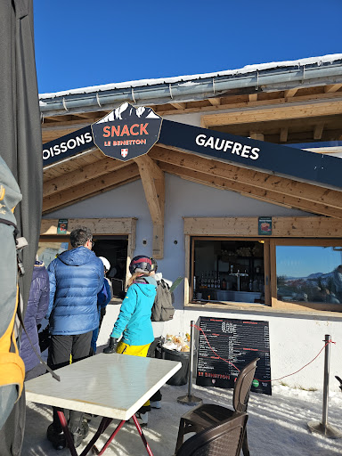 Read moreEn vacances sur une semaine de congĂ©s scolaires surchargĂ©e, nous avions pris nos dispositions longtemps Ă lâavance en rĂ©servant une table en terrasse au Benetton une semaine avant la date, histoire dâĂȘtre certain de bĂ©nĂ©ficier de cette charmante terrasse ensoleillĂ©e au milieu des pistes. Quel ne fut pas notre surprise dâĂȘtre traitĂ© bien aprĂšs les gens arrivĂ©s sans rĂ©servation, et dâĂȘtre placĂ© Ă lâombre lors de la seule journĂ©e ensoleillĂ©e du sĂ©jour ! Lorsque nous avons fait part de notre mĂ©contentement, sans un mot plus haut que lâautre je le prĂ©cise, la personne en charge du placement est devenue totalement hystĂ©rique et nous a arrachĂ© les cartes des mains, refusant de nous servir. Vu le nombre de personnes faisant la queue ce jour-lĂ pour obtenir une table, le Benetton nâen a que faire du service et de la politesse et ils savent bien que de mauvais commentaires ne les empĂȘcheront pas de continuer Ă faire service plein ! Je vous dĂ©conseille toutefois fortement cet Ă©tablissement. Des restaurants moins bien placĂ©s dans la station dĂ©ploient, eux, de grandes aptitudes Ă lâamabilitĂ©, Ă la politesse et Ă la sympathie. Le Benetton,...