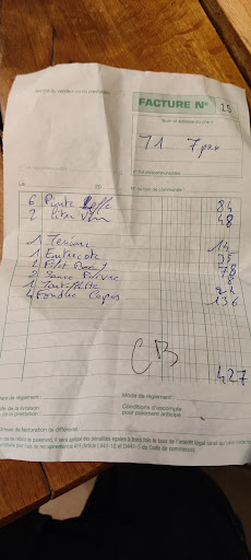 On the dishes we were served tasteless terrine, cold, worthy of a high school canteen dish fondue: a block of pure Emmental cheese mixed with water - even though it was supposed to be a 3-cheese fondue - the worst in my life, and I felt embarrassed in front of my foreign friends to whom I had praised this dish. The salad, with the "fonfue" was bland and unseasoned. -tartiflette. Absolutely tasteless and not enough generous my friends ordered fillet of beef for 40e. The waiter asked them what sauce they wanted. They replied "poivre" as in any classic restaurant - this sauce was charged on the bill at 8€! Please find the bill in picture as proof The price isn't a problem, but at the very least you should warn people, especially when the price is 40 euros for the plate, that it's the least you can do to present a dish with a sauce and seasoning. One of my friend asked an entrecôte vral they gave him a beef. He kindly told them that it was not the order he asked and they just replied that he was wrong and that's all..but they still charge the pepper sauce! The price of alcohol is excessively expensive - 14€ a beer, 24€ per wine liter - in a quality restaurant with a friendly setting this is acceptable, but given everything we have it's unacceptable.