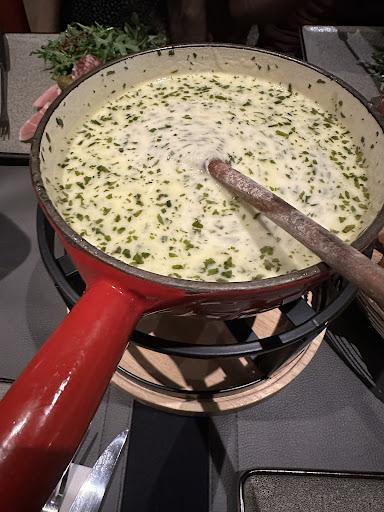 First of all, the food was great! We had the fondue with mushrooms and the wild garlic one, and I highly recommend the garlic one if you’re into that. It was different and delicious, could really feel the flavour.