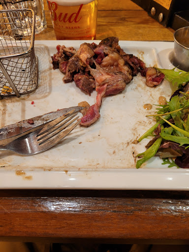 The food is actually not bad at all, BUT the service is probably the worst I’ve ever had. To start with, we had to wait a really long time to be noticed by the waiter. Then we had to look for him to come and take our order. Then we asked him for another menu as our friend was joining us. The guy literally threw it on our table. We asked for some extra plates and he gave it to us 20 minutes later, when were almost done eating. Then, somebody spill my beer all over the table and my pants and he did not even bother helping cleaning our table. He threw some dirty wet tower to me to clean it out myself. No napkins and he did not even ask if I wanted another one (I didn’t mind paying for it). The waiter gave to all of us so much attitude that I could believe waiters like that exists. If he doesn’t like serving and can’t hide his bad mood, he should probably quit. So very not pleasant experience which is a shame because the...