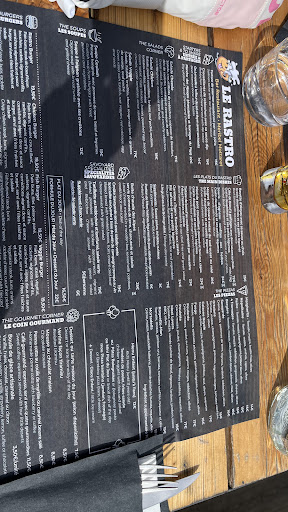 We ate so well in Mottaret, and Le Rastro was no exception. The staff were charming and obliging, the casual atmosphere excellent. I had a hearty and very large bowl of goulash soup, which was delicious, and my two companions had tataki de truite laquée à la japonaise, and a burger! Both said their meals were excellent. The two carnivores washed their dinner down with a local savoyard mondeuse which was very good, and the trout was washed down with a nice glass of savoyard rosé. Desert was panna cotta au coulis de myrtilles and scoops of excellent ice cream. Altogether a very enjoyable experience....