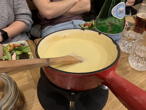 Friendly people and quite the cozy setup. The food was average, some things like the potatoes had a nice touch to them, but other things like the meat plates you get with raclette or cheese fondue where small and not that great. Also the amount was too little, my sister who usually never even gets to half of her plate ordered an extra one, which did cost an extra 10 euro. The dessert was pretty awesome and we had a great time overall. Theres room for improvement however so 4...
