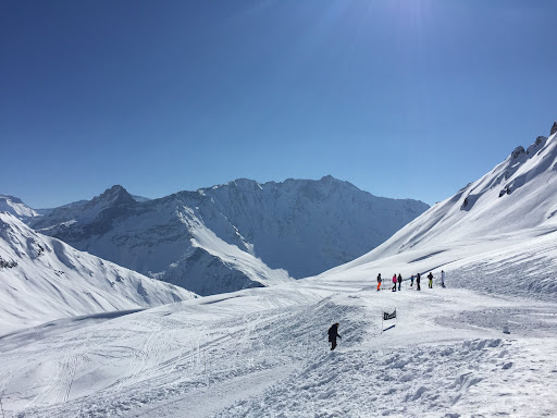 Unbeatable view for a mountain restaurant - on a sunny day the view from the terrace is amazing. Food good with a varied menu - service efficient with very assertive staff keeping the queues moving! It can feel very rushed to place an order, but this keeps the queue moving along quickly. Toilet facilities are clean but down some quite steep stairs so care is needed in ski boots! Pedestrians can access the restaurant from both the Arc 1800 (via Transarc) and Arc 2000 (via Arcabulle) valleys so it is a great place to meet non-skiers too (assuming they have a pedestrian lift pass). There is a also a walking circuit with incredible views for non-skiers. Recommended - but a popular choice so avoid peak times...