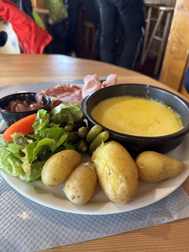 Read moreJe connais le lieu depuis des années mais je n'avais pas eu l'occasion de laisser un avis car lors de mon dernier passage il y a une 10aine d'années, Maps n'existait pas. Resa par téléphone simple. Le resto est situé légèrement au dessus du départ du telesiege des colosses. Soit vous montez à pied, soit vous coupez par la bleue près du half pipe et vous tangentez sur la droite en passant par flanc de montagne... Le service assuré ce jour là par deux jeunes hommes était très inégal. Le "roux" plutôt sympa et souriant. Le brun plutôt fermé et peu accueillant. Service rapide. Salade Caesar copieuse mais un peu sèche. Bavette aux échalotes un peu dure à mâcher bien que bleue... Ambiance intérieure ultra spartiate. Rien ou presque sur les murs. Tristounet à souhait. On est loin de chaleur de Grillette ou de l'élégance de la Vache Rouge. Ça fait resto routier sur le bord d'une nationale. Étonnant car des objets vintage c'est pas ce qui manque dans la région. Cela ne restera pas une expérience exceptionnelle. Service moyen, ambiance moyenne. Table moyenne ....