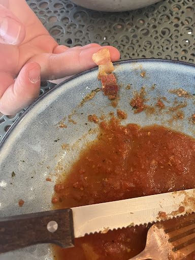 Pasta arrabiata contained bacon! Waiter claimed strongly that it did not after accidentally eating one (and letting a friend taste a 2nd), and it was absolutely vegetarian. When I found a third piece I flagged the waiter again and he said "ah it's just one piece, maybe the chef put it in". He was very rude about it. This is a major issue: food should be labelled correctly on the menu, and bacon has no place in pasta arrabiata (!). If they make this major mistake and don't even care about it, what else do they do?