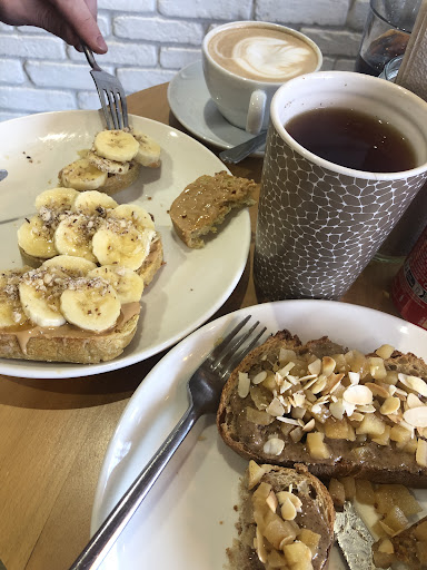 Read moreDécouvert par hasard le temps d'une pause repas, nous nous sommes laisser porter à la découverte de l'endroit. Une fois installé par la serveuse nous remarquons que la carte est accessible uniquement sur nos smartphone en scannant un QR code disposé sur la table. A l'heure où nous passons beaucoup de temps sur nos téléphones, je trouve dommage de reposer les yeux sur un portable au moments du repas. Il faut vivre avec son temps diront certains. Malheureusement la navigation n'est pas du tout intuitive, et nous arrivons sur la page menu du petit déjeuner. Le bouton du lunch n'est pas flashy et il a fallu que je montre aux autres comment faire. Forcément la vision globale de ce qui est disponible entre un menu papier de taille A4 ou un écran de 15cm ne donne pas le même rendu et rend désagréable et difficile la comparaison et le choix menu/plat unique... J'ai l'impression finalement d'avoir choisi un plat par dépit après avoir scroller plusieurs fois et perdu patience. La prise de commande et le service est rapide. J'ai pris un risotto pesto poulet et aux champignons. Servi dans un assiettes creuses de taille plutôt moyenne, la qualité est clairement au rendez-vous. Le chef maîtrise clairement son plat. C'est une réussite. Nous avons accompagné nos choix respectif de bière japonaise (fabriquer en Italie 😆) et un café ☕ pour le côté coffee shop. Au final le prix du plat me paraît un peu élevé par rapport à la quantité et au produit de base (c'est du riz). Si vous cherchez un lieu de restauration healthy, cet endroit...