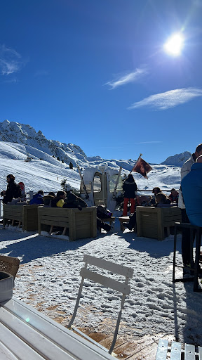 Read moreNous sommes en passés en février et sommes revenus en mars. À chaque fois un moment magique. Que ce soit au soleil, à apprécier la vue magnifique au rythme du dj, ou par mauvais temps pour apprécier la déco chaleureuse et cocooning. Le chocolat chantilly (très généreux en chantilly) est un des meilleurs de la station, et le vin chaud maison dont nous avons pu avoir une partie de la recette est vraiment délicieux. Pour les plats, le plat thaï maison que je reprend à chaque fois que nous passons est vraiment très bon et change des classiques plats savoyards. La mousse au chocolat maison ou la salade de fruits maison en dessert sont dans mes favoris aussi. Le clou de ce lieu devenu incontournable de nos séjours à la Plagne, la qualité du service que l’on ne trouve nulle part ailleurs. Certes il s’agit d’un self, pour autant le staf est accueillant, au petit soin, toujours prêt à vous aider à porter votre plateau ou à vous trouver/débarrasser une table afin de s’y installer. Je recommande vivement ce lieu que nous revisiterons avec hâte. À l’année...