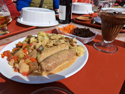 Read moreSkied out for the day to one side of the map for lunch. A good sized place inside and out, we sat outside (great views). This is a self-serve restaurant and requires navigating several stair cases in your ski boots... Not for everyone.