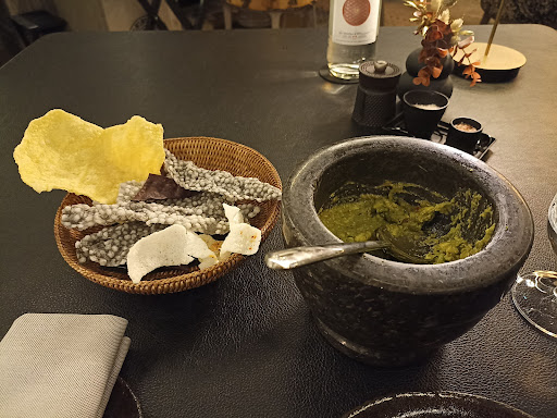 The meal started with an average complimentary guacamole. Four different types of chips were served, though none of them a standout.