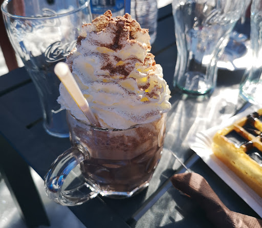 Read moreJe ne peux pas juger de la qualité des plats n'y ayant pas mangé. Par contre lorsqu'il fait beau, un petit verre en terrasse à cet endroit est vraiment agréable. Toujours ensoleillé. Je mets 4 étoiles car à chaque fois le service a été parfait et souriant. Merci les saisonniers. Le chocolat viennois est sympa, mais la gaufre chocolat pas top. Pour les prix ils sont en rapport avec le lieu, 3€80 le coca, 3€90 le vin...