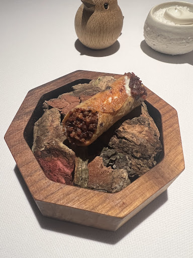 Read moreThe theme of the restaurant is "the forest" - that starts with the decor which includes tree logs as an seperator in the restaurant. Very nice and cozy but still elegant. The theme is also integrated in the food by primary focussing on warm, full-bodied, earthy flavours. The food was absolutely delicious, but the heavy dishes took a toll on me and I had to give up when they served petitfours at the end. It was just a bit over the top. The wines in the wine pairing were acceptable but did not match the quality of the food. I wished there was an option to upgrade the pairing. Overall, it was a very good experience - the staff was friendly and smiling but also very busy, so there was a few times where I didn't had my wine served at the same time...