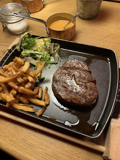 Read moreExcellent atmosphere and good food, but a bit pricey. We had a steak each which were cooked perfectly to our liking and tasted great. It was a great experience being able to see each cut available for the evening before ordering, to showcase the meat and it’s quality. We enjoyed a lovely lemon meringue pie for dessert which was a great way to finish. We also got to see the other dessert options to help us decide. We had hoped to experience a bit more of a local vibe from the menu, but were a bit disappointed to learn that the meat was from Ireland, beers from Belgium and Brooklyn, and sparkling water from Italy. Everything tasted great nonetheless. Most of the staff were attentive but one waiter appeared to not know what she was doing and walked around with our dish for a while, until figuring out what it was and where it was going. Overall, would definitely recommend for a great evening vibe and good food, but be prepared for a bit of a dent in...