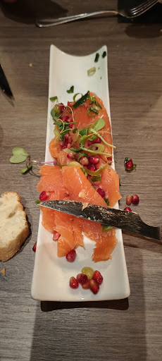 Read moreThis place is ok. We enjoyed the salmon with pomegranate and spring onions! Food service of the tapas could be better because little thought has gone into functionality of plates and utensils (they were thinking of style). It is extremely difficult to eat a meal from a skinny plate (see photo) because much of the accompaniment ends up on the table. Service is ok - we were welcomed at the door.