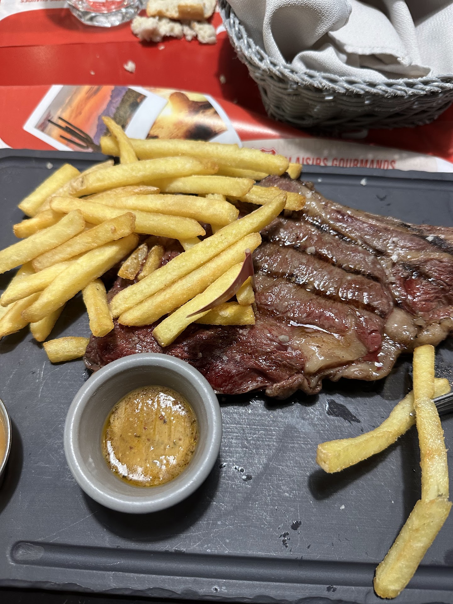 Pour ce qu'il en ai du choix proposés du plat d'une viande dite mariné, je pense qu'il faudrait peut-être que vous goutier vos plat , car insipide ducoup sans intérêt de plus qu'une viande sans marinade, et ce rajoute a ça les fameuses frite maison limite cuite bien évidemment cela va de soit 🤣
