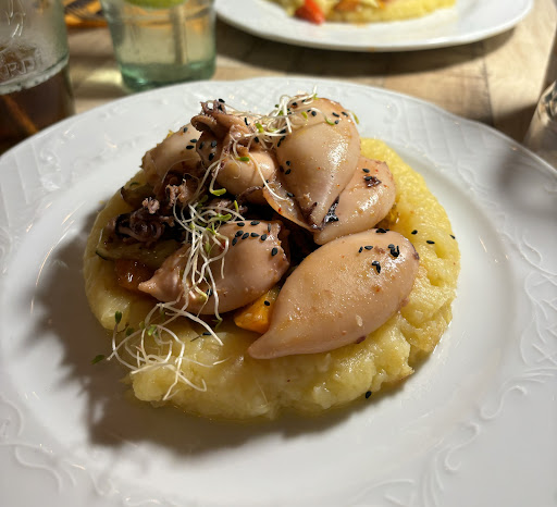 Read moreEn voilà un bon petit restaurant. Sans réservation, nous avons été reçu par une serveuse polyglotte , souriante et efficace. Un homme au contoir a demandé avec insistance à ma femme si elle était cliente du restaurant en guise de réponse à la question : " excusez moi pouvez vous m'indiquer où sont vos toilettes svp?" Heureusement que la serveuse qui nous a accueilli est venu en soutien à ma femme qui a pu aller se laver les mains avant le repas. Par la suite, je lui ai demandé si je pouvais avoir un peu plus de pain, que cela éviterai à la serveuse de se déplacer exprès. Il m'a alors répondu que j'avais déjà 8 bout de pain. Ce à quoi je lui ai répondu, on se connais pas, ça se voit, 8 tranches de pain pour un camembert rôti ca va faire juste. Il m'a alors déposé 2 bouts de plus. Bien évidemment je les ai tous mangés. Donc je conseille de venir avec sa propre baguette en fait. Merci aux 2 serveuses, celle des boissons , la brune, est drôle et pétillantes. Celle du repas , la blonde, ne manque pas d'humour et de bons conseils, que ce soit en anglais, en espagnol ou en italien même. Ps: s'il est nécessaire de changer les couverts entre l'entrée et le plat, peut être proposer le également aux autres clients.. Un bon restaurant tout de même ou nous nous sommes régalés, nous le...