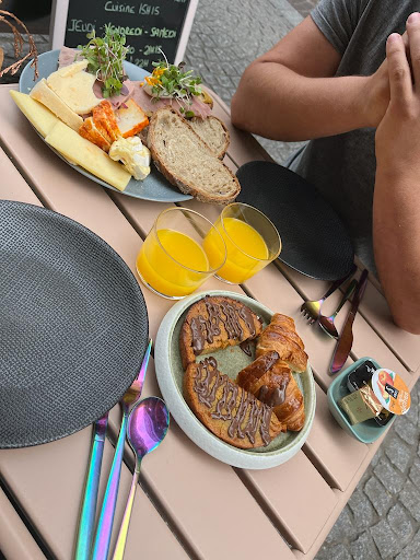 Contrairement à ce qui était annoncé sur la carte, nous avons eu la moitié d'un croissant et la moitié d'un pancake (qui n'en était pas un) chacun.. Et nous avions 1 seule tranche de pain chacun, pour la pâte à tartiner, la confiture ou le fromage. En plus, pas de boisson chaude incluse. Néanmoins un petit verre de jus de fruit qui a le mérite d'être pressé. L'avocado toast, lui, était plutôt bon.