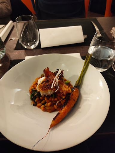 Read moreJ'ai été vraiment très déçue par ce restaurant. La carte présentait peu de choix. Les plats étaient vraiment très chers donc on s'attend à une certaine qualité et à une quantité convenable. Quelle déception. Un restaurant qui se veut chic et gastronomique mais qui ne l'est pas du tout. Aucune proposition de plat végétarien sur la carte, et quand on demande on obtient pour réponse " mais vous n'avez pas regardé la carte ? Il y a du poisson"... Une des personnes présentes a pris une pièce de boeuf et demande un couteau à viande, la réponse de la serveuse " pourquoi, parce que vous n'y arrivez pas avec celui là ? " D'un ton désagréable en parlant du couteau à beurre... J'ai pris le Dos de cabillaud à 23,5 € accompagné de légumes et au moment de manger la carotte avait été mal lavée, il y avait du sable dans le plat. Le dessus du morceau de poisson avait un goût de brûlé. L'assiette est ridiculement grande pour une portion minuscule comme vous pouvez voir sur la photo. Le service est à revoir. La cuisine laisse à désirer. 2 étoiles pour le cadre qui est agréable,...
