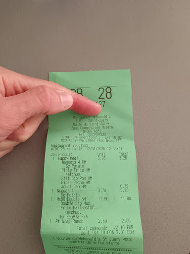 Read morePlus de 30% d'augmentation sur le menu Mac First en deux ans... elle a bon dos l'inflation !! Et c'est à la discrétion du magasin (menu à 4,95 € à Rennes et à... 6,75 € à Albi St Juéry - trouvez l'erreur !) Et maintenant, on ne peut plus avoir de bière avec le menu (sans explication claire de la raison): je renonce définitivement à être pris pour un gogo.
