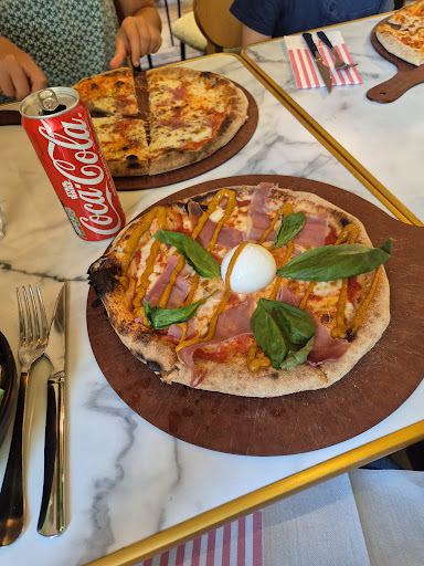 Nous avons eu un excellent accueil, naturel et souriant, dans des locaux à la décoration forte agréable. La carte propose à la fois les valeurs sûres mais aussi des pizzas innovantes (pizza à base de crème de potimarron par exemple, exceptionnelle 💖) Le rapport qualité/prix et quantité/prix est très bon, nous avons notamment testé 5 pizzas différentes, toutes délicieuses, pas une miette n'en est restée. Des desserts variés, dont 3 tiramisus différents, tous très léger pour finir le repas sur une touche sucrée sans l'impression du "trop plein" de l'estomac. Enfin, de bon commerçant, honnête et généreux tout du long de notre repas.
