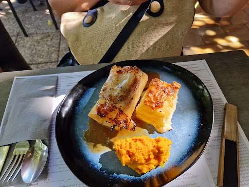 Point à améliorer me semble t-il : L'assiette végétarienne est bonne mais un peu élevée en prix par rapport aux mets présents dans l'assiette. Pour 15 euros on attend un peu mieux que 10 frites, 1 pomme de terre grenaille, 3 cuillères à soupe de purée de cèleri, 3 cuillères à soupe de purée de patates douces et une demi-poire cuite. Elle manque un peu de Peps🌈