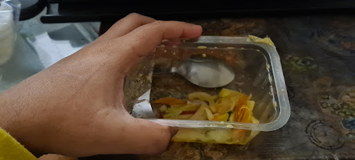 Read moreÉnorme désillusion par rapport à la quantité. Pour une commande passée en livraison 60€ sur UberEats, nous avons reçu pour deux personnes,une quantité équivalente à, pour comparaison, un bigmac et demi, deux si je donne un avis généreux. Et ceci pour deux plats et une entrée. Les prix grossis de Uber n'excuse en rien cette quantité, par rapport à la concurrence TOUT type de restaurant concurrent. C'est la première fois que je commande pour un tarif supérieur à 30e et que je ne suis pas rassasié, loin de là pour vous donner une idée. Nous avons eu deux barquettes minuscules chacun en plus d'une petite pour l'entrée. Je n'essayerai pas ce restaurant sur place étant donné le piètre aperçu que nous avons eu. Évitez de commander en livraison en tout cas si vous souhaitez en avoir pour votre argent. Excusez la photo du plat déjà mangé,nous avions vraiment (et encore) faim ! La qualité somme toute banale mais toutefois correcte du repas est la seule raison que je donne une étoile et demi ( vu qu'on ne peut pas voter en nombre décimal,j'arrondis...
