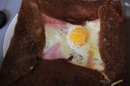 Read moreOn y mange correctement les produits ont l'air frais, cuisinés minute et le service est très rapide. Cependant 2/3 point font baisser la note. Tout dabord le service très "amateur", étant ancien maître d'hôtel j'y suis forcément un peu sensible. Ensuite, c'est bien d'ouvrir la porte du resto continuellement mais quand on est dans une petite rue du centre ville avec un appartement en face au rdc qui faisait un bruit pas possible (ils n'arrêtaient pas de s'insulter en criant c'était très désagréable). Et enfin, la crepe salée clairement trop cuite (mais pas cramé, c'était bon. La pate était juste dur et cassante) avec des résidus de cuisson marrons sur l'assiette blanche en dessous. La crêpe sucrée par contre rien a redire.
