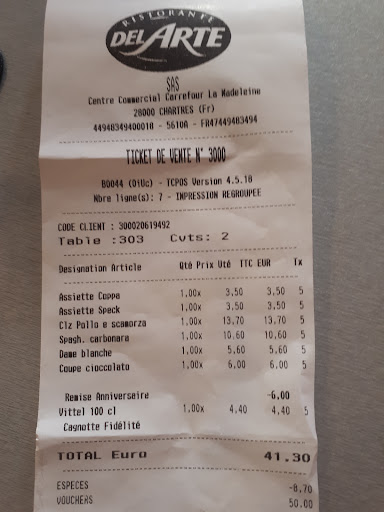 Read moreFUYEZ !! De passage à Alençon, nous avons voulu nous faire un DelArte connaissant bien la chaîne et jamais déçu. Pour la première fois, nous quittons le restaurant sans même avoir mangé. Des l’apéritif, les cocktails commandés arrivent sans aucun goût et fade. L’eau pétillante promise n’est autre que de la vulgaire eau du robinet. Nous sommes ensuite obligé de demandé les petits gressins servir pour patienter habituellement puisque personne ne nous les apporte. Les serveurs discutent ensemble mais personne ne vient nous voir. Une fois les plats commandés. Ceux ci arrivent froid alors qu’ils sont sensé sortir du four. Bien qu’il y ai une « finition froide » sur la pizza celle ci n’est pas sensé arrivée complètement froide comme si elle sortait d’un frigo, la sauce tomate est sans goût et semble coupée a l’eau. Nous nous levons donc pour quitter le restaurant et faire part de notre mécontentement au personnel. Nous sommes très mal traités et incompris, de plus on nous demande de payer des cocktails que nous n’avons pas consommer. Le relationnel client laisse plus qu’à désiré et cet établissement est une honte pour la...