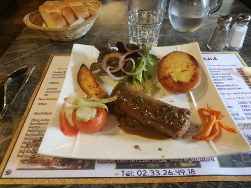 Read moreRead moreHier, je me suis rendue à St Ceneri le Gerei. Comme c'était un lundi, j'ai donc vérifié que ce restaurant était ouvert et j'ai réservé pour deux. J'ai bien fait car cela valait mieux. Plus de demandes que de places, faute de personnel, ai-je appris. Je me suis régalée voire même extasiée. J'ai pris un saumon gravlax (non sans une certaine appréhension car les précédents que j'avais mangés dans d'autres restaurants étaient trop salés et décevants) == délicieux et fondant entouré de produits frais et décoratifs comme de la pastèque, d'une petite tomate cerise avec une tranche de figue séchée, du melon d'Espagne très rafraîchissant, etc. Ensuite, j'ai commandé de l'andouillette "à l'ancienne" même chose, un délice également avec des patates nouvelles discrètement aillées. Enfin un "Eton Mess aux fraises" (par curiosité car je ne connaissais pas) c'est un genre de variation de la pavlova. Trop occupée à manger, je n'ai même pas pensé à faire de photo. Possibilité de vin au verre pour 3 euros (très bon vin rouge d'Anjou, pour moi) Le couple qui nous servait était très accueillant sans être obséquieux et a veillé, du début à la fin, à notre bien-être en nous permettant d'avoir une table en extérieur mais à l'ombre alors qu'au début nous étions exposés au soleil ce qui était moins confortable. Au total : très bon accueil, et mets délicieux. J'étais déjà allée dans ce restaurant et je n'ai jamais été déçue même s'il me semble que les personnes qui y œuvraient n'étaient pas les mêmes. Rapport qualité/prix satisfaisant, dans un cadre enchanteur. J'ai payé autour de 60€ pour 2 (entrée, plat,...