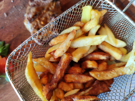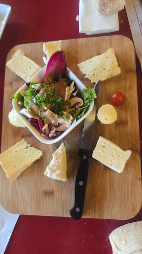 Nous avons commencé avec une planche de charcuterie, encore une fois accompagnée d’une salade beaucoup trop assaisonnée, presque immangeable. Le plat principal, un tartare, était correct dans l’ensemble, heureusement. Mais les frites qui l’accompagnaient étaient beaucoup trop salées, et — surprise — encore une salade. Honnêtement, je ne comprends pas cette obsession de vouloir absolument coller de la salade à chaque plat, surtout quand elle n’est même pas bien préparée.