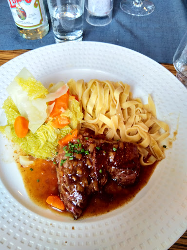 Rien à dire sur le repas , c'était bon bien assaisonné et de qualité avec une carte tout à fait alléchante. Pour le service beaucoup de réflexion sans intérêt, quel dommage... On vient pour se faire plaisir avec un repas à la carte en semaine mais on a l'impression de déranger alors que c'est proposé!!! Autant ôter la carte alors les midi de semaine et ne laisser que le menu du jour. Pourquoi pas? Ça aurait été mieux plutôt que de nous faire des remarques... J'aurai bien mangé des frites avec mon tartare de boeuf à la carte mais on ne m'a proposé que de la semoule ou du pain!!!! C'est dommage de laisser les plats à la carte de cette façon en semaine. Bref dommage car la cuisine est bonne mais cela ne suffit pas à faire un restaurant agréable où on a plaisir à retourner... Dommage,ça n' aurait pas coûter plus de temps ni plus de travail de...