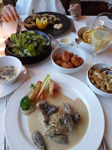 Le restaurant au Cheval Blanc à Feldbach est un bon restaurant dans le Sundgau. Il est doté d'une bonne carte ( qui cependant parfois manque de changements ) certes, il y a les "Suggestions du Moment" mais celles-ci s'éternisent parfois sur 6 mois.; généralement ce que le restaurant propose reste agréable pour les papilles. Cependant, je leur conseillerai d'avoir plus de produits régionaux et frais* (Ex : leurs chanterelles et morilles ne sont pas fraîches même en saison ce qui est bien dommage, car d'autres restaurants du secteur proposent du frais régional à prix équivalent voir moins chère ). Leur carte de vins est énorme de toutes gammes de prix - là aussi je trouve dommage (pour les bouteilles les prestigieuses allant de 1 000 € à plus de 7 000 € ) ils ne proposent pas de Menu extraordinaire qui s'allierait à une gamme de vin comme proposer sur la carte ( je ne dis pas, que ce qui est proposer n'est pas bien mais rien ne correspond culinairement à de tels vins ( Ex: Proposez du Pigeon, caille entière, Wagyu, Kobe, vieille vache, Pata Negra, Saint Pierre, Rascasse, Loup de mer, Lotte etc.. ) pour accompagner de tels vins ).