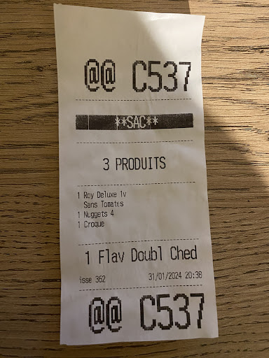 Nous sommes deux, ce nâest pas le bout du monde et trois oublies dans la commande. Je reviens et lui notifie il me dit que non, je lui mets le ticket sous les yeux que pour une fois j'ai  imprimĂ©s et heureusement!!! Il ferait mieux de rester concentrĂ© au lieu de discuter avec cet ami passant par lĂ .