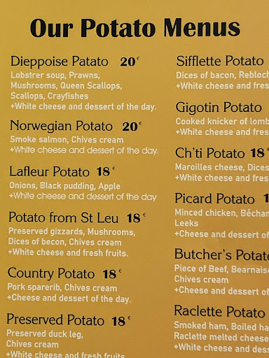 Read moreThe oddest restaurant Iâve been to in a long time. The location by the river was great but the menu was something else! Basically itâs baked potatoes with toppings, but not your typical toppings of chilli or tuna, but chicken or smoked salmon and other. Whatever you chose came with a salad and sauce and a small dessert, 2 of us got strawberries and crĂšme fraiche but the other got a kind of crĂšme brĂ»lĂ©e, no choice. It was edible but not the tastiest meal, I couldnât finish mine as I had 2 potatoes piled with cheese and ham. So if you love plain food and potatoes then you will love it but I wish we had picked somewhere else, thereâs loads of options...