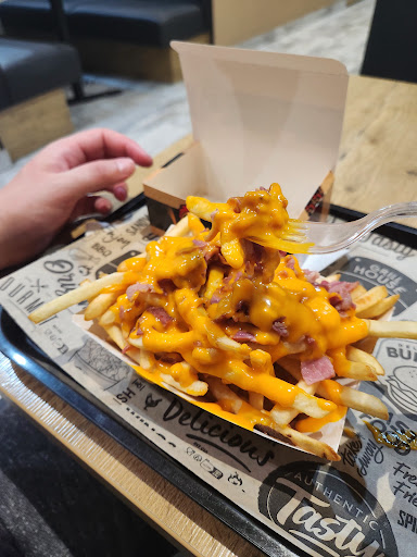 Points positifs: -lieu très grand(avec un étage), place à table confortable, et il y a de l'espace entre chaque table -écran pour commander soit même, puis un numéro vous appel pour vous dire que la commande est prête. -toilettes propres -jeux enfants -personnel sympathique et souriant -leur frites en spirale avec cheddar et bacon sont bien garnies et très très bonnes.