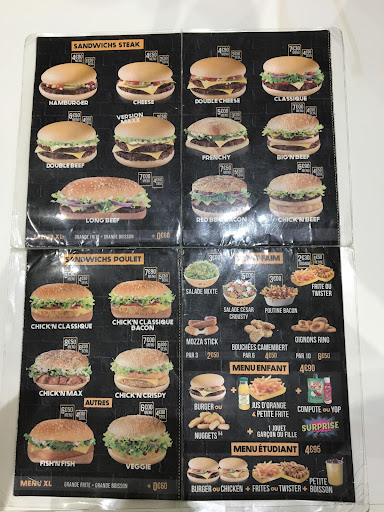 Read moreJ'ai commandé aujourd'hui 2 hamburgers, j'ai précisé que je ne voulais que des oignons en crudité, résultat j'ai rien eu, merci d'avoir lu mes préférences, ça fait plaisir. En plus de ça, aucun goût de poulet a été prononcé sur mes papilles gustatives et le pain était vraiment pas terrible. Les nuggets étaient tièdes et pas croustillant. La salade dans un des hamburgers que j'ai commandé était tout sauf fraiche, à croire quelle attendait d'être mise dans l'hamburger depuis 1 semaine… Les sauces dans les hamburgers ne sont pas précisés, résultat, j'ai du enlevé toute la sauce avec une cuillère, le seul point positif de cette commande était que même avec énormément de sauce dans mon hamburger, le goût était pas prononcé. Ceci dit, les mozza sticks étaient pas mal, j'ai pu contempler ma faim avec. Je ne recommande pas aux gens sauf à ceux qui souhaitent être malade ou déçu de leur commande (38 euros pour ça...